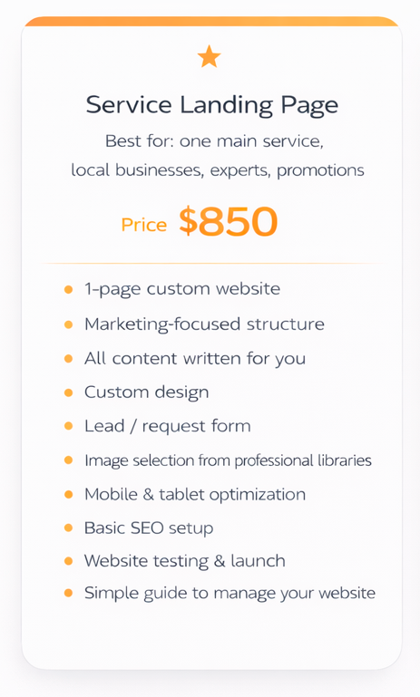 We work with business owners who need a professional website that attracts clients and clearly presents their services.